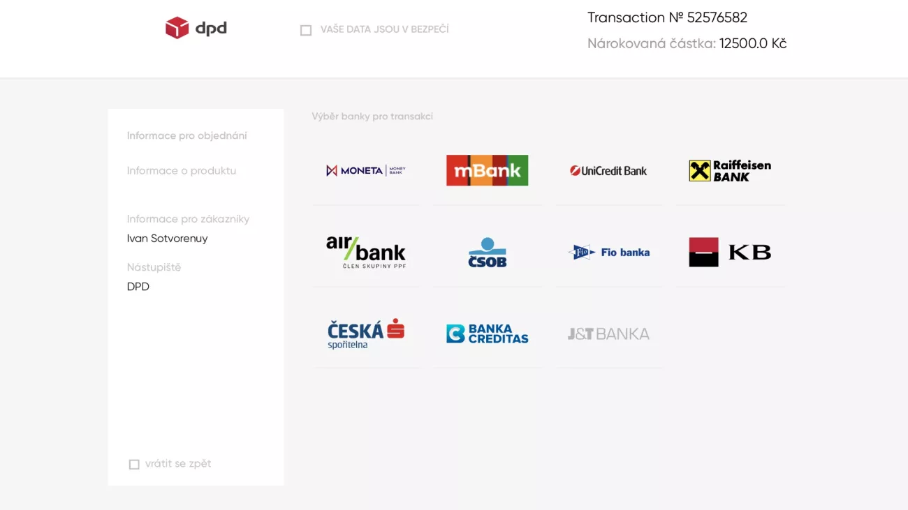 Jenomže to nejhorší přijde až pak. Posledním krokem na podvodné webové stránce je platební brána, kde zvolíte svou banku a následně máte zadat do předpřipravených kolonek číslo účtu, klientské číslo, přihlašovací login, ale hlavně heslo od internetového bankovnictví.