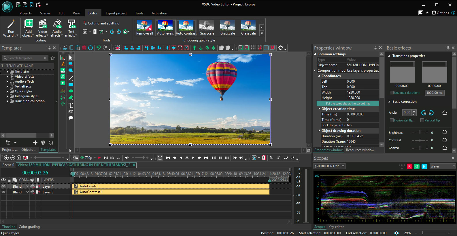 Program VSDC Video Editor pracuje se všemi běžnými formáty videa, tedy samozřejmě i se záběry pořízenými kamerou smartphonu, akční kamerkou, fotosoubory a zvukovými soubory, určenými k použití jako hudební podkres nebo třeba namluvený komentář. Kromě toho umí VSDC Video Editor pořizovat videozáznam obsahu obrazovky Windows a samozřejmě i oken jednotlivých aplikací. Pro úpravy videa je připravena dlouhá řada nástrojů na střih a úpravy, doladění obrazu (barvy, filtry, efekty), vkládání animovaných efektů nebo přechodových efektů mezi záběry. Detailně lze upravovat i zvukovou stopu vznikajícího filmu, a ještě jej proložit statickými snímky. V nabídce programu VSDC Video Editor nechybí ani pokročilé funkce, jako je klíčování záběrů před barevným pozadím nebo vkládání titulků. Pro hlavní funkce jsou k dispozici průvodci, se kterými bude vaše práce jednodušší.