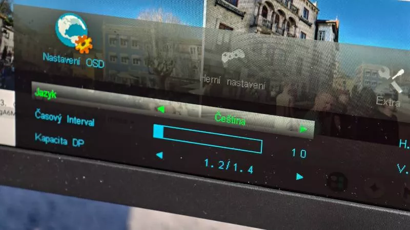 Výborná zpráva je, že OSD menu monitoru je lokalizované do češtiny. Ovládací tlačítka na spodní hraně obrazovky jsou ale nevýrazně označena a ovládání by mohlo být přehlednější. Nabídka OSD menuje standardní a najdeme v ní i osm přednastavených režimů včetně herního, sportovního, filmového až po černobílý textový.