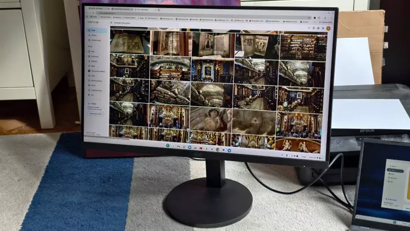 Co tedy nejlevnější 27” IPS monitor s možností výškového nastavení přináší z hlediska kvality obrazu? Kupodivu poměrně dost, rozhodně to není zklamání. IPS panel s matným antireflexním povrchem ukazuje příjemně živé a poměrně přesné barvy se 128% pokrytím barevného prostoru sRGB a 95% pokrytím HDR prostoru DCI-P3. Barvy jsou sice jen 8bitové (s technologií FRC), ale stále je to IPS panel, takže na základní a středně náročnou práci s fotografiemi nebo videem stačí.