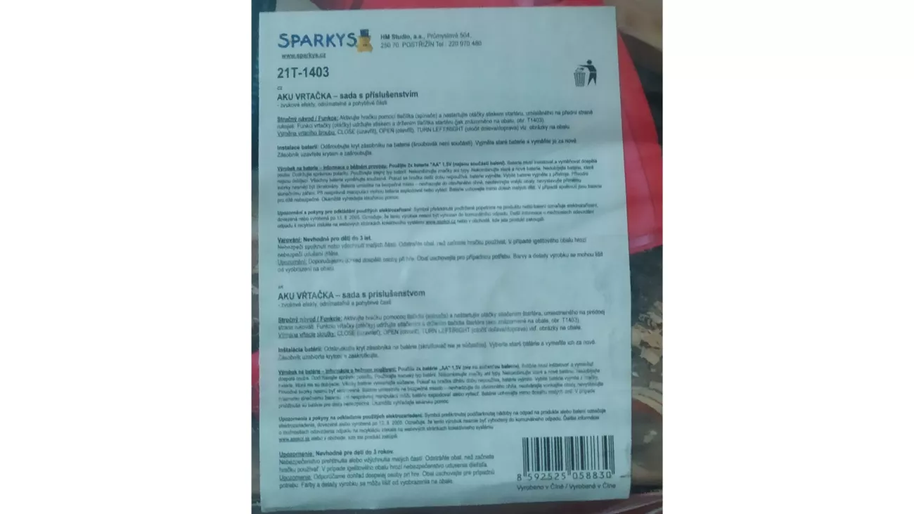 Inspekce varuje hned před dvojicí hraček, které mají připomínat akušroubovák či vrtačku. Jde o Šroubovák Craftsman Depot od značky Playfellow a AKU vrtačka 21T-1403 od značky Tegole. V obou případech jde o výrobek z Číny, avšak s eurounijním dovozcem a oficiálním lokálním distributorem: v prvním případě jde o Tesco Stores ČR, v druhém řetězec hračkářství Sparkys.