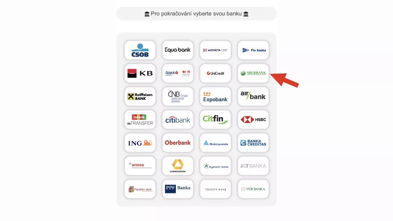 Následně jsme dostali na výběr, na jakou banku chceme převést peníze za zboží. Nutno uznat, že podvodníci skutečně myslí na všechno: kromě klasických bank byly v nabídce i zahraniční (HSBC, Commerzbank, ale dokonce i PPF Banka, Trinity Bank, Česká národní banka, anebo ruská Sberbank, která však v Česku již nefunguje. I to by vám mělo dát signál, že něco není v pořádku.