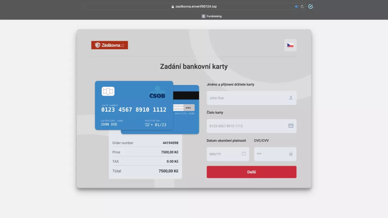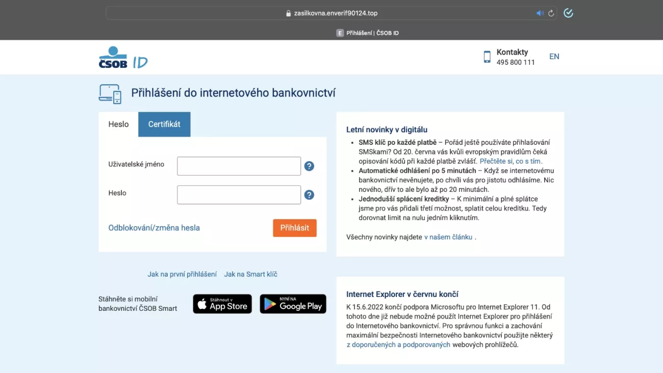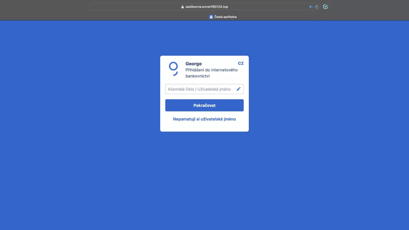 Pak už je podvod klasický – objeví se falešná přihlašovací stránka vašeho internetového bankovnictví, přičemž jakékoliv údaje zadané do kolonek se rovnou odešlou zločincům. Zaznamenali jsme, že u některých bank podvodníci rovnou vyžadovali zadání údajů k platební kartě.