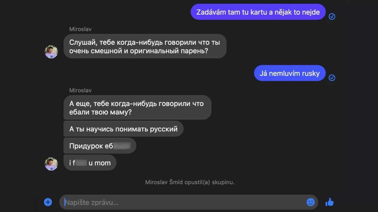 Jakmile údaje do okének zadáte, dojde k chybě a proces můžete opakovat. To protože brány jsou falešné a nemají fungovat. Podvodník se ale rychle dozví, že jste mu poslali své údaje. V našem případě se „pan Šmíd“ rychle přeorientoval na Rusa a začal nám sprostě nadávat, jak je vidět na přiložených snímcích.
