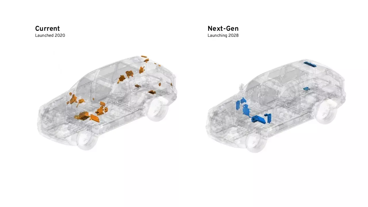 Společně s autonomním systémem přijde i kompletně nový počítač, který bude řídit všechno – od motoru přes brzdy až po zábavu. Místo desítek samostatných řídících jednotek bude jen jeden centrální počítač napojený na „zónové ovladače“ po celém autě. Nový systém má být 35krát výkonnější v oblasti umělé inteligence a mít tisíckrát větší datovou propustnost než současná verze.
