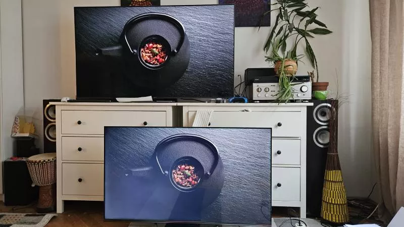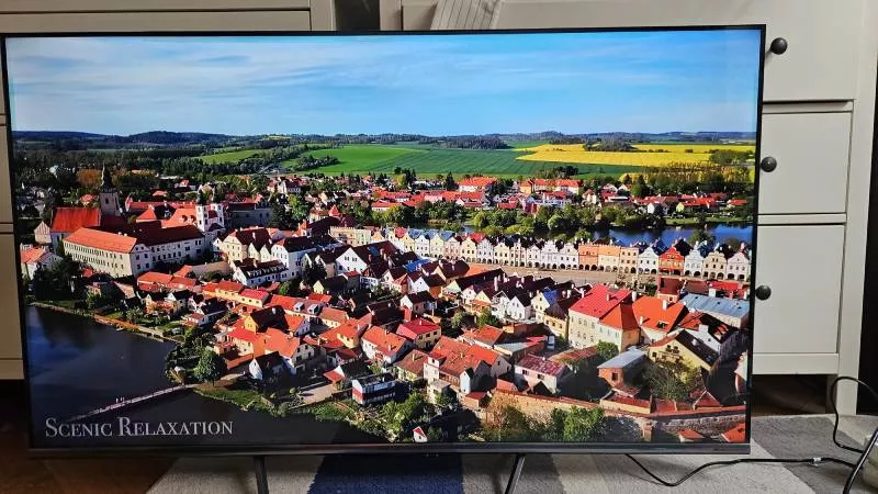 Základem je 55” UHD obrazovka s LCD QLED panelem, která sice nemá Mini LED podsvícení, ale během testu vykázala dobrý obraz s rovnoměrným podsvícením a u světlých scén i poměrně dobrým odlišením detailů. V tmavých scénách se samozřejmě nemůže srovnávat s Mini LED nebo OLED panely, což je zvlášť patrné při přímém srovnání. Černá je spíše šedá a detaily se ztrácí, v tmavých scénách jsou navíc poměrně málo saturované barvy, ale pro běžné sledování televize a seriálů opět nic kritického. Milovníci špičkového obrazu ale musí sáhnout k OLED nebo Mini LED obrazovce.