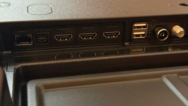 Vzadu na panelu najdeme tři HDMI konektory, z nichž jedenmá podporu eARC, dva USB konektory pro připojení externích disků, digitální i analogové zvukové konektory i CI+ slot a LAN zdířku. Samozřejmostí je podpora Wi-Fi a Bluetooth. Televizor obsahuje trojitý TV tuner s podporou DVB-T2/S2 a DVB-C.
