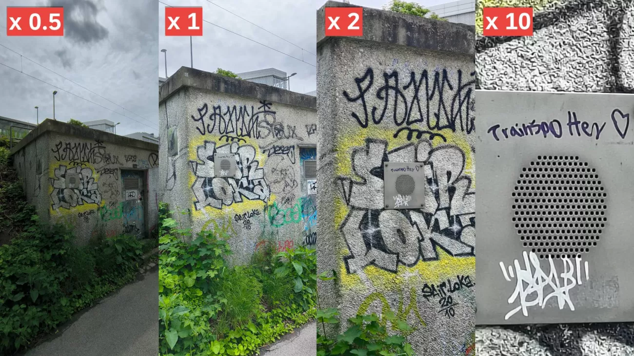 Pro bezztrátový optický zoom není k dispozici teleobjektiv. To znamená, že si můžeme fotografovaný objekt přiblížit pouze digitálně, a to až desetinásobně. Z hlediska kvality nejsou větší úrovně přiblížení přesvědčivé a působí příliš rozmazaně. Většina “neskládaček” v této cenové kategorii to umí mnohem lépe.