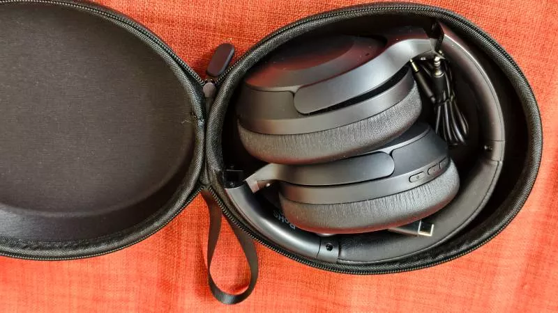 Díky skládací konstrukci se sluchátka snadno přenášejí a v balení najdete i pevné pouzdro, ve kterém se nachází i 3,5mm audio kabel a krátký nabíjecí USB-A/C kabel. Na první posaz nás potěšily i měkké náušníky z umělé kůže, díky kterým sedí na hlavě i po několika hodinách poslechu pohodlně. Samozřejmě s nimi nesmíte chodit dlouho na slunci, to by se potila i sluchátka z přírodní kůže.