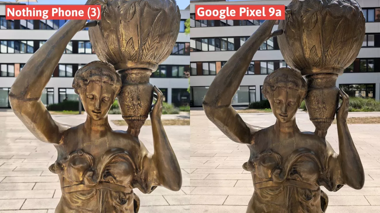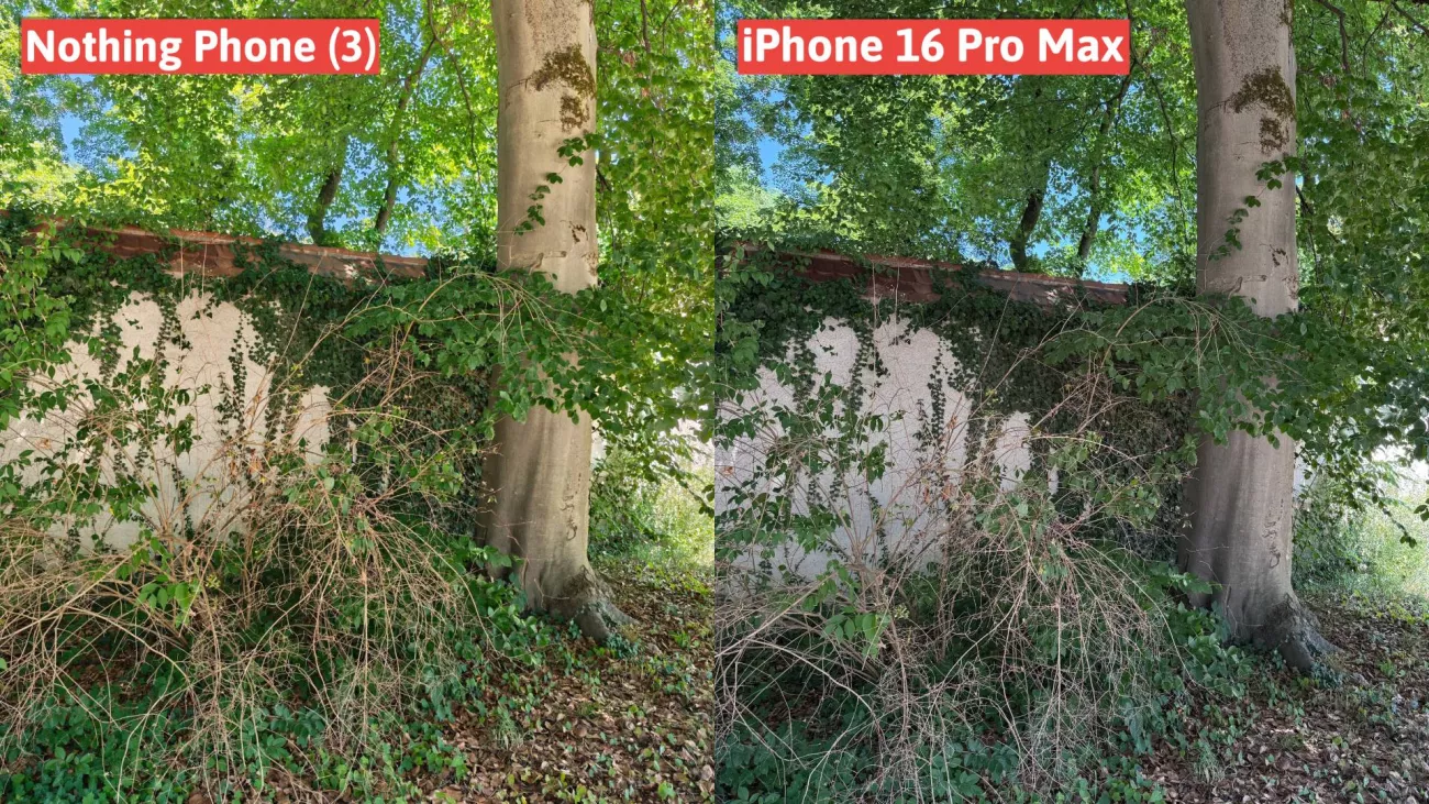 Celkově je kvalita fotografií pořizovaných telefonem Nothing Phone (3) působivá. Smartphone produkuje velmi ostré, přirozeně vypadající fotografie s krásnými efekty rozmazání a praktickými doplňkovými režimy, jako je ultraširoký nebo noční režim. V přímém srovnání lze výsledky fotoaparátů umístit z hlediska kvality i barevné rovnováhy někam mezi špičkový Google Pixel 9a a iPhone 16 Pro. Snímky nejsou přespříliš realisticky tmavé, ale zároveň nepůsobí přebarveně. Pouze ve stínu se musíme pozastavit nad příliš přeexponovanými a křiklavými barvami.