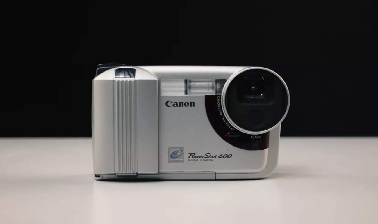 První PowerShot s označením 600. Pro uložení používal ještě PC karty (PCMCIA Type II) – SD karty totiž v té době ještě nebyly a objevily se až o tři roky později.