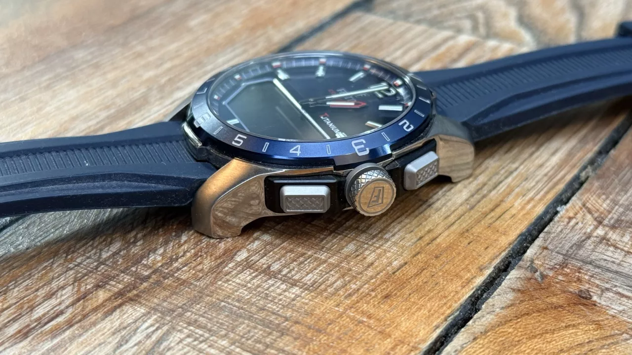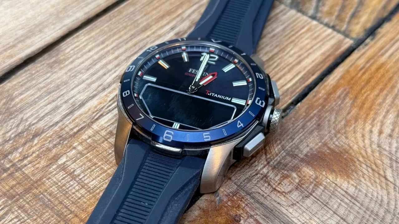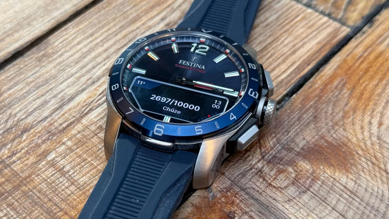 Hodinky se jmenují Festina Connected D a kromě netradičního silikonového řemínku byste asi ani nepoznali, že jde o chytré hodinky. Mají titanové pouzdro o průměru 45 milimetrů, tradiční analogový ciferník a velkou lunetu.