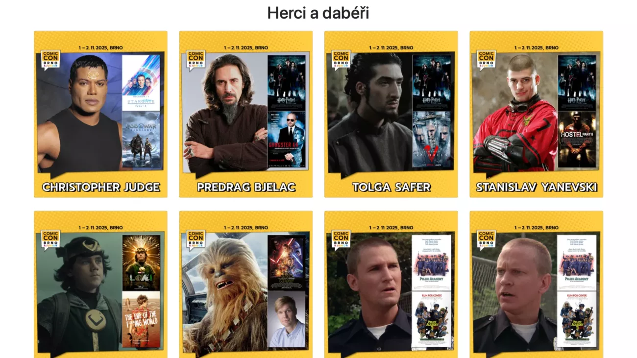 Herci a hvězdy seriálů, kteří se mají objevit na brněnském Comic-Conu