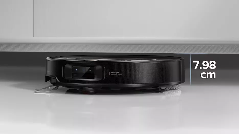 Robot má na výšku necelých 8 cm, což mu umožňuje šmejdit pod skříněmi, pohovkami a dalšími kusy nábytku, kde se vám vysávat opravdu nechce. Čistící stanice je schopná proprat vytírací podložky a zařízení je také kompatibilní se systémem Matter 1.4 – nabízí funkci hledání a fotografování domácích zvířat.