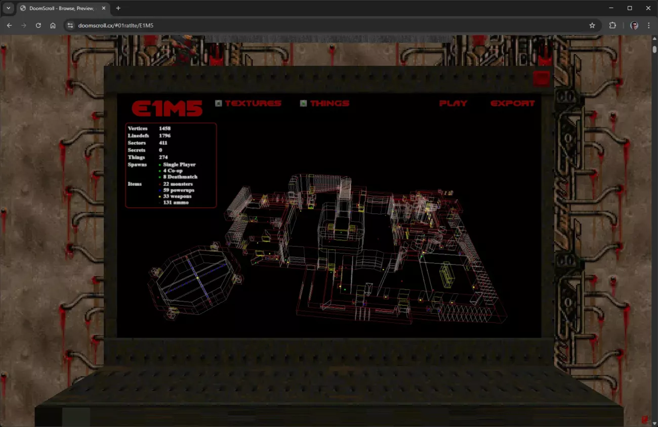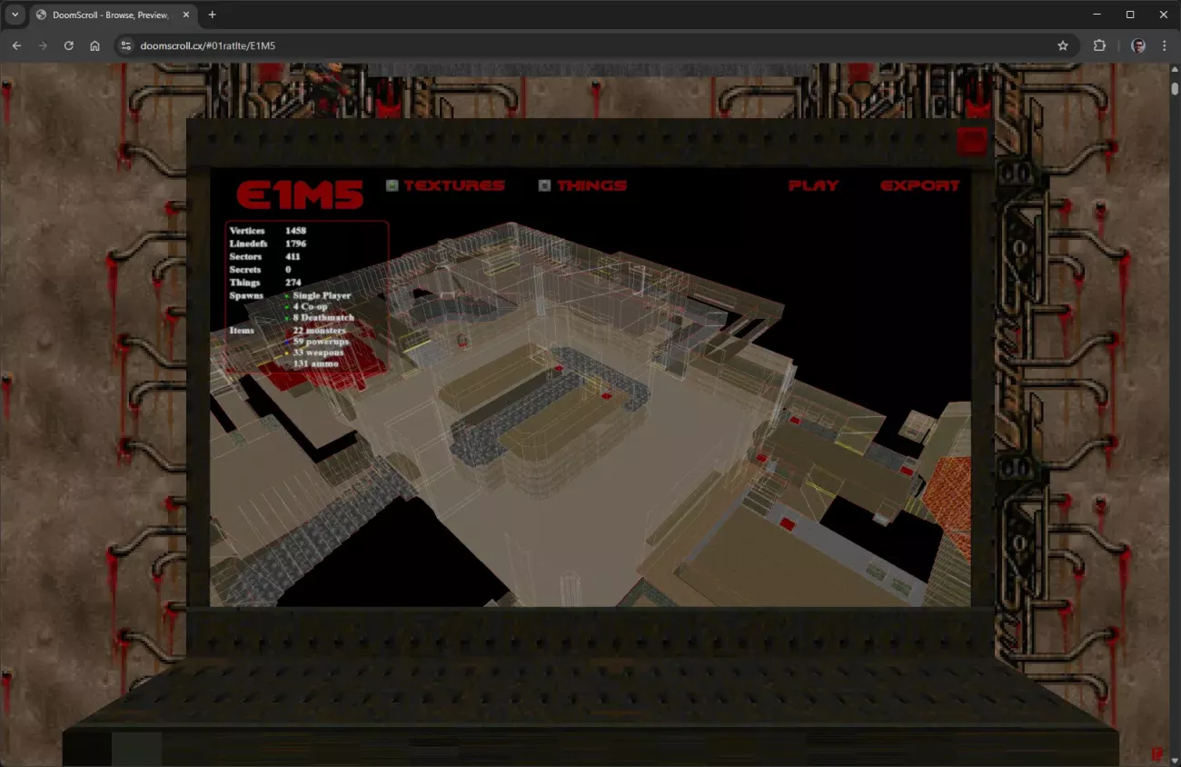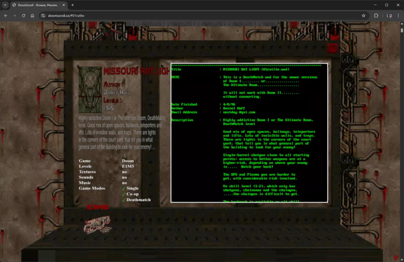 Web využívá emulátor XRDoom a obsahuje stovky až tisíce komunitních map ve formátu WAD, které hráči vytvářeli během posledních třech dekád. Najdete zde úplně všechno – od jednoduchých map vytvořených začátečníky, kteří se teprve učili vyvíjet hry, až po kompletní konverze s novou hudbou, texturami a grafikou od týmů, z nichž se později stala plnohodnotná herní studia.