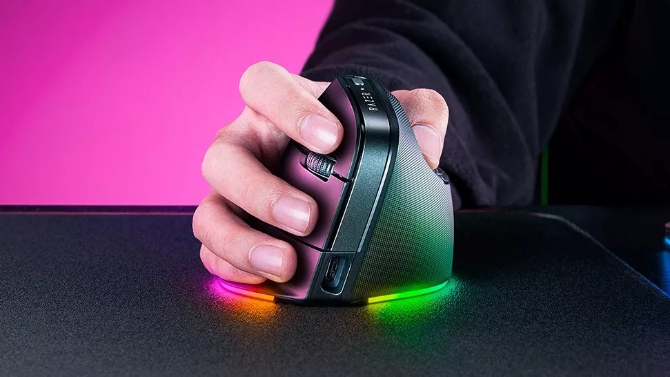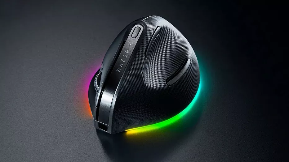 Jak možná správně tušíte, jde o speciální vertikální verzi oblíbené myši Razer Pro Click 2. generace, která byla rovněž představena. Tvar vertikální verze je dle očekávání uzpůsoben tomu, aby se myš držela „jako by“ z boku, se speciálním hlubokým výkrojem pro palec pravé ruky. Tomuto ergonomickému úchopu se říká „handshake“, tedy „podání ruky“.