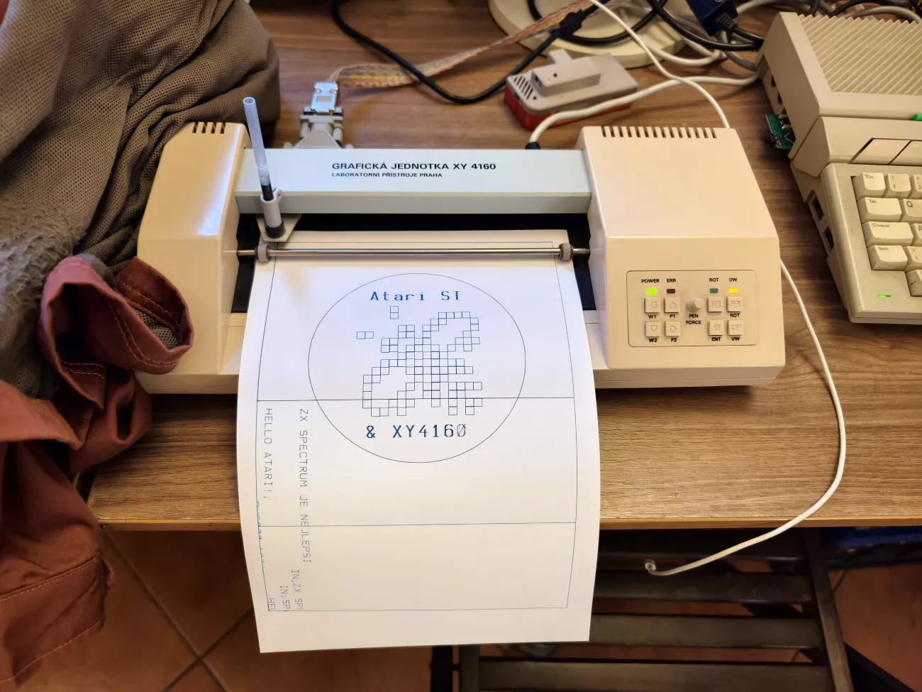 Atari 1040ST a plotr - grafická jednotka XY 4160 z Laboratorních přístrojů Praha.