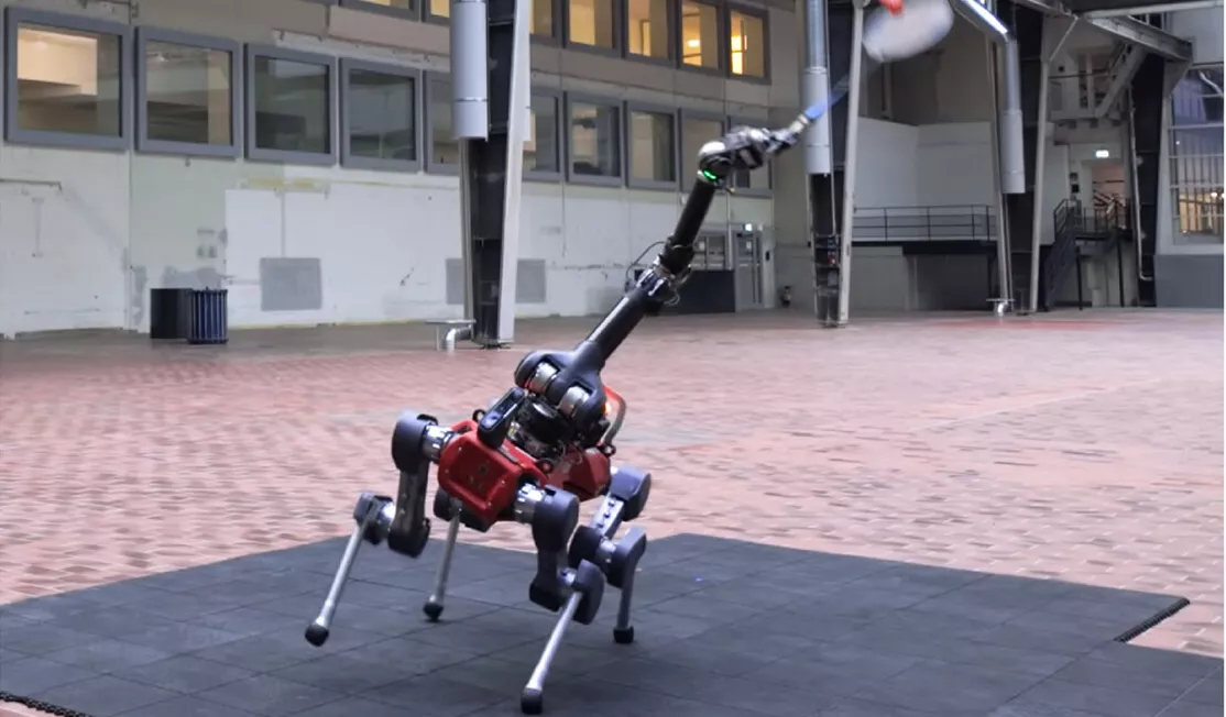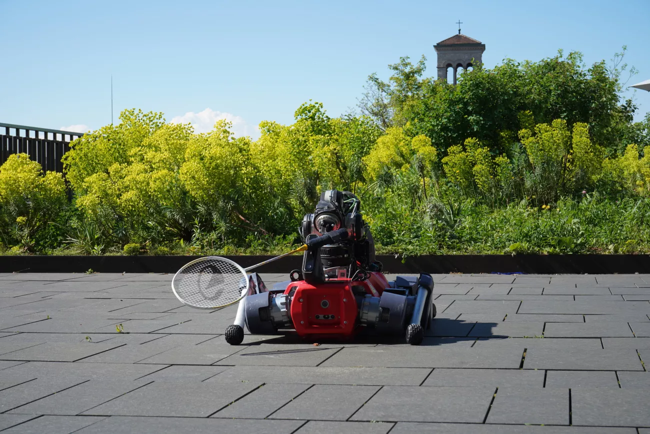 Tento čtyřnohý stroj ANYmal váží přibližně 50 kilogramů, je půl metru široký a necelý metr dlouhý. Jeho nohy jsou osazeny elastickými aktuátory, které mu umožňují pohyblivost potřebnou pro rychlé změny směru na kurtu. Na těle má namontované robotické rameno s několika stupni volnosti, které drží a ovládá raketu.