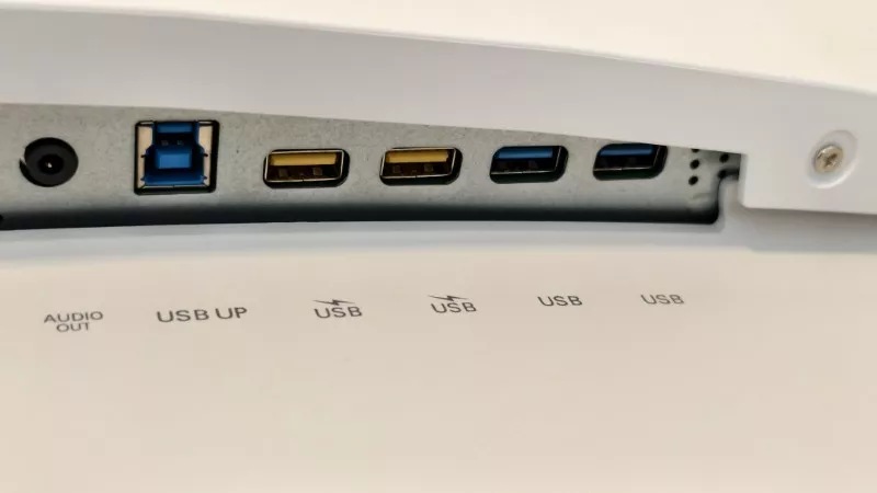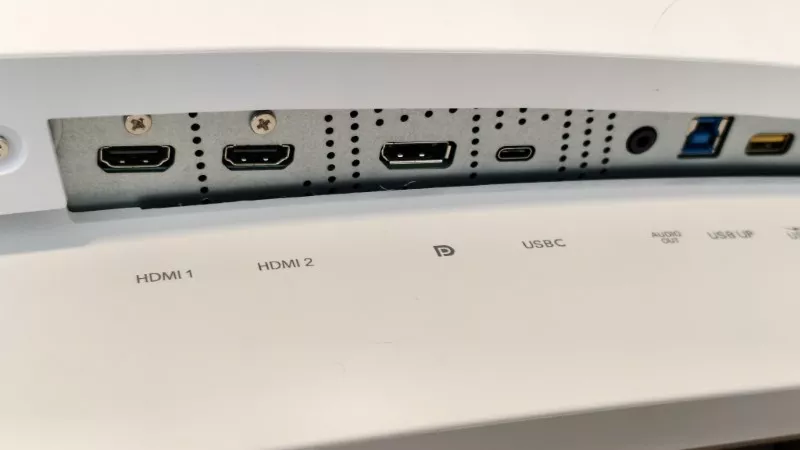 Ke grafické kartě se monitor připojuje pomocí široké nabídky video konektorů, počínaje dvěma zdířkami typu HDMI 2.1, přes DisplayPort 1.4 až po USB-C port s podporou přenosu videa (DisplayPort) a až 90W napájením připojeného notebooku pomocí Power Delivery 3.0. Dále je zde USB-B konektor a rozbočovač s celkem čtyřmi USB-A porty a samozřejmě i 3,5mm výstup na sluchátka. Monitor má ale čtveřici skvělých 7,5W interních reproduktorů (dva výškové, dva basové) s příjemně prostorovým a mohutným zvukem. Ve výbavě monitoru chybí pouze LAN zdířka a webová kamera, ale to jsou drobnosti.