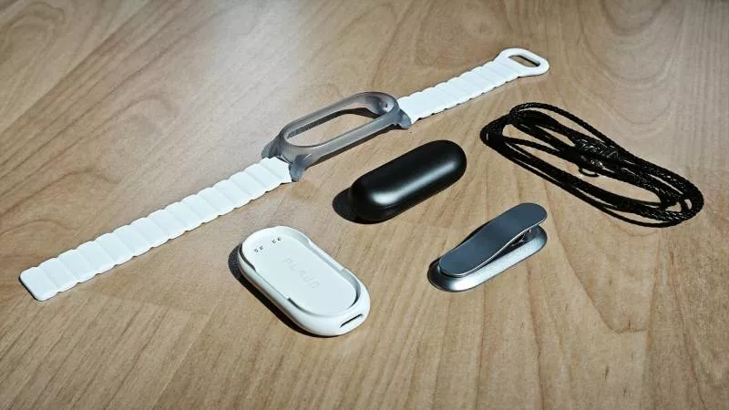 Součástí balení AI mikrofonu Plaud NotePin je i bohaté příslušenství pro různé způsoby nošení