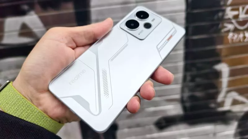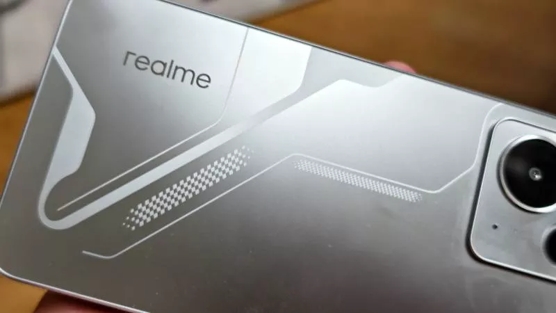 Záda telefonu Realme 14 5G s futuristickým mecha designem