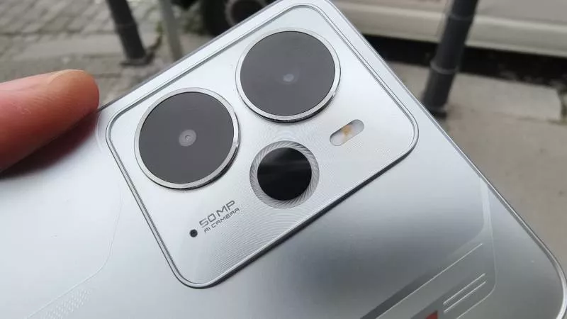 Ačkoliv to na pohled vypadá, že se na zadní straně nachází tři objektivy, prakticky telefon používá pouze hlavní 50Mpx fotoaparát s optickou stabilizací. Vedle něj je zde už jen 2MPx hloubkový ToF snímač a třetí kroužek obsadil blesk.