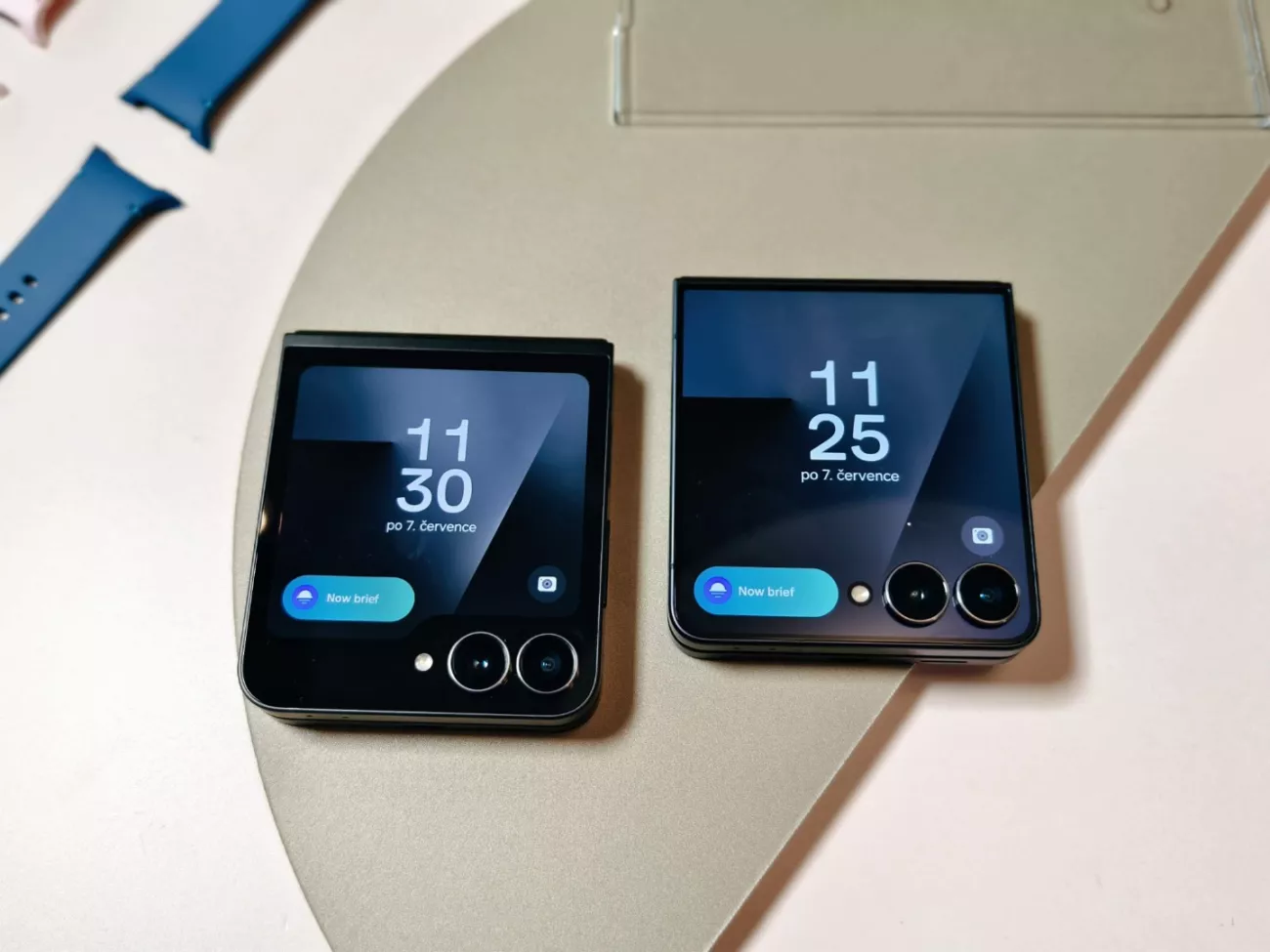 Klasický model Galaxy Flip 7 za cenu 30 000 Kč v akci už vypadá zajímavěji. Hlavní změnou oproti předchozím modelům je to, že displej na vnější straně je tentokrát téměř přes celou půlku telefonu. Má 4,1 palce a tenké rámečky. Na to, že jde o doplňkvý displej jsou zajímavé i další jeho parametry - 120 Hz a 2 600 nitů. Chybí v něm jen výřezy na fotoaparáty – základní s rozlišením 50 Mpx a světelností f/1.8 a širokoúhlý s rozlišením 12 Mpx a světelností f/2.2.