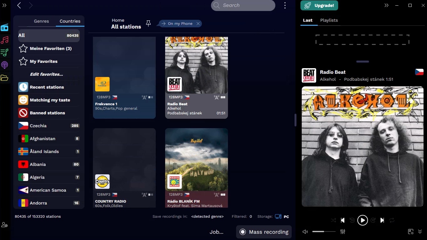 Aplikace Audials Radio zná přes 57 tisíc rádiových stanic vysílajících po internetu, z toho hned 258 českých rádií. Vyhledávat v nich můžete podle zemně, žánru, názvu, žebříčků oblíbenosti a dalších kritérií. Pak se hned můžete pustit do nahrávání.