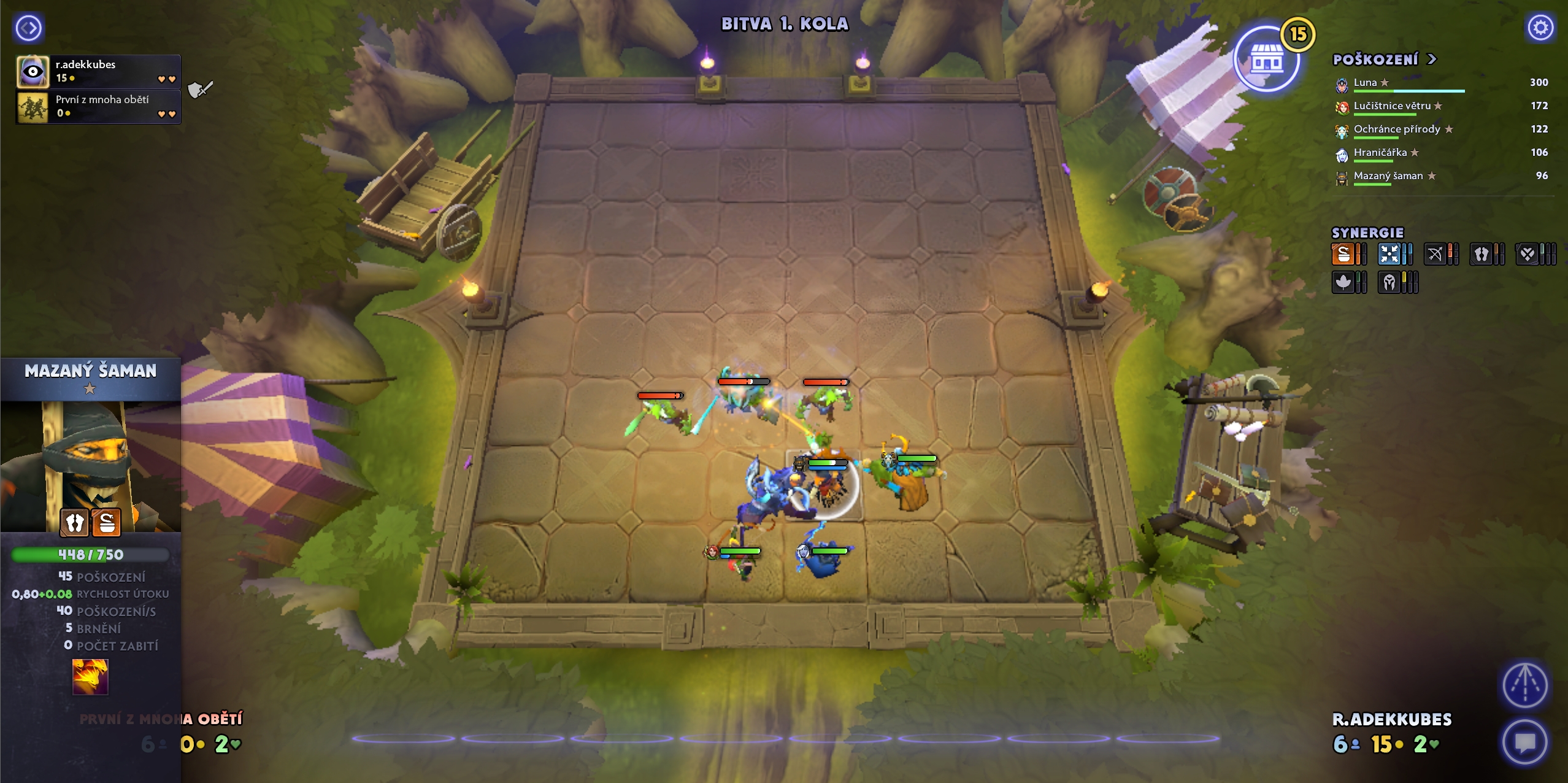 Mezi jednotlivými koly si můžete prohlédnout sestavy všech soupeřů a přizpůsobit svou strategii aktuální situaci. Hra zobrazuje přehledné statistiky o zdraví hráčů, jejich úrovni i počtu výher a proher, takže máte vždy přehled o průběhu zápasu.