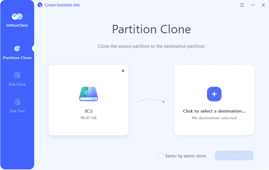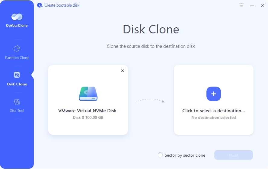 S funkcí „Disk Clone“ můžete kopírovat obsah celých disků, aniž byste volili konkrétní oddíly k přenesení na jiný disk. Tato funkce programu DoYourClone vám pomůže nejen s instalací nového disku, ale také s vytvářením kompletních a okamžitě použitelných záloh.