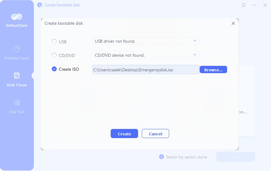 Abyste mohli pomocí zálohy disku vytvořené v programu DoYourClone znovu zprovoznit nefunkční počítač, budete potřebovat spouštěcí USB flash disk s prostředím pro obnovu dat. Tento záchranný disk si snadno vytvoříte přímo v programu DoYourClone.