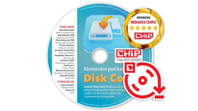 Program EaseUs Disk Copy slouží k vytváření přesných kopií pevných disků i jednotlivých oddílů, což se hodí pro zálohování i k přenosu dat na nový disk. Plná verze - Chip 10/2025.