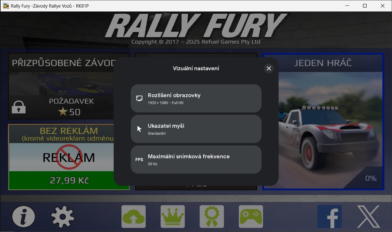 V případě graficky náročných her můžete narazit na limity výkonu grafické karty vašeho počítače. Po spuštění hry můžete v nastavení emulátoru snížit rozlišení obrazu a také snímkovou frekvenci. To by mělo trhání obrazu rychle vyřešit.