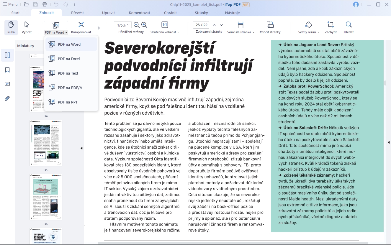 Mezi nejžádanější funkce programu iTop PDF budou jistě patřit nástroje na konverzi PDF souborů do editovatelné podoby. Pokud ale chcete na wordový nebo excelový dokument převést jen několik stránek, musíte je nejprve extrahovat do nového PDF souboru.