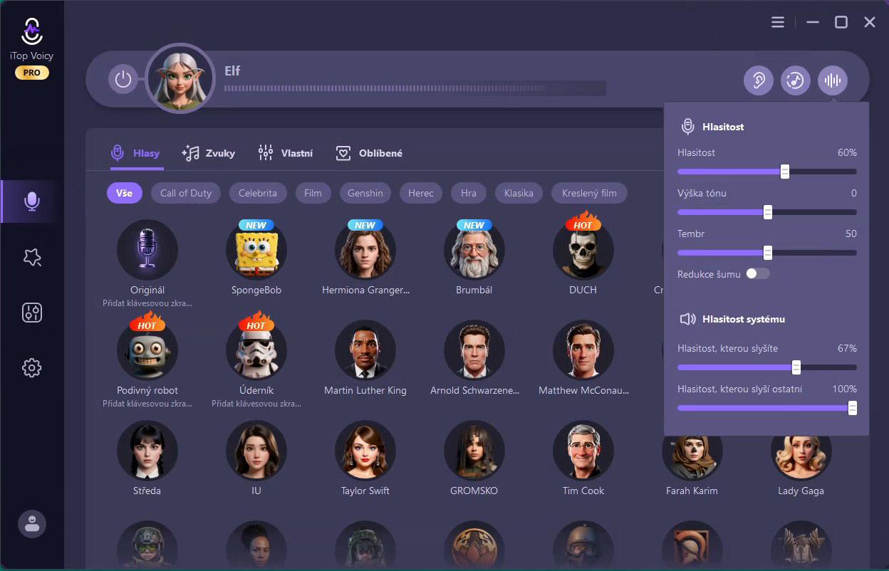 iTop Voicy je moderní AI modulátor hlasu, který umožňuje měnit hlas v reálném čase při hraní her, streamování, online komunikaci i tvorbě multimediálního obsahu. Program nabízí širokou škálu realistických hlasů – od klasických mužských a ženských variant přes dětské hlasy až po stylizované postavy inspirované filmem, anime nebo počítačovými hrami. Díky využití umělé inteligence působí výsledný zvuk poměrně přirozeně a je použitelný nejen pro zábavu, ale také pro jednoduchý voiceover nebo anonymizaci hlasu. Velkou předností je přehledné uživatelské rozhraní a rychlé nastavení mikrofonu, takže základní použití zvládnou i méně zkušení uživatelé bez nutnosti složité konfigurace. Software je kompatibilní s populárními aplikacemi jako Discord, Skype nebo Zoom, což umožňuje jeho využití při online hovorech, streamování i nahrávání videí. Praktickým doplňkem je integrovaný soundboard, který obsahuje různé zvukové efekty pro zpestření komunikace nebo tvorbu zábavného obsahu. Uživatel může upravovat parametry hlasu, například výšku tónu nebo barvu, a přizpůsobit si tak výsledný efekt podle vlastních potřeb. Výhodou je také relativně nízká latence, takže změna hlasu probíhá téměř okamžitě a nenarušuje plynulost komunikace. Mezi hlavní výhody patří kvalitní AI syntéza hlasu, jednoduché ovládání, dobrá kompatibilita s běžnými komunikačními a streamovacími nástroji a dostupná bezplatná verze, která umožňuje program vyzkoušet bez nutnosti okamžité investice. Nevýhodou může být menší nabídka výrazně humorných nebo extrémních efektů ve srovnání s některými konkurenčními programy a také omezení pokročilých funkcí v neplacené variantě. Celkově jde o spolehlivý a univerzální nástroj, který ocení začátečníci i pokročilejší uživatelé hledající jednoduchý způsob, jak kreativně upravit svůj hlas. Další informace najdete na produktové stránce, v on-line nápovědě výrobce a ve videorecenzi na YouTube.