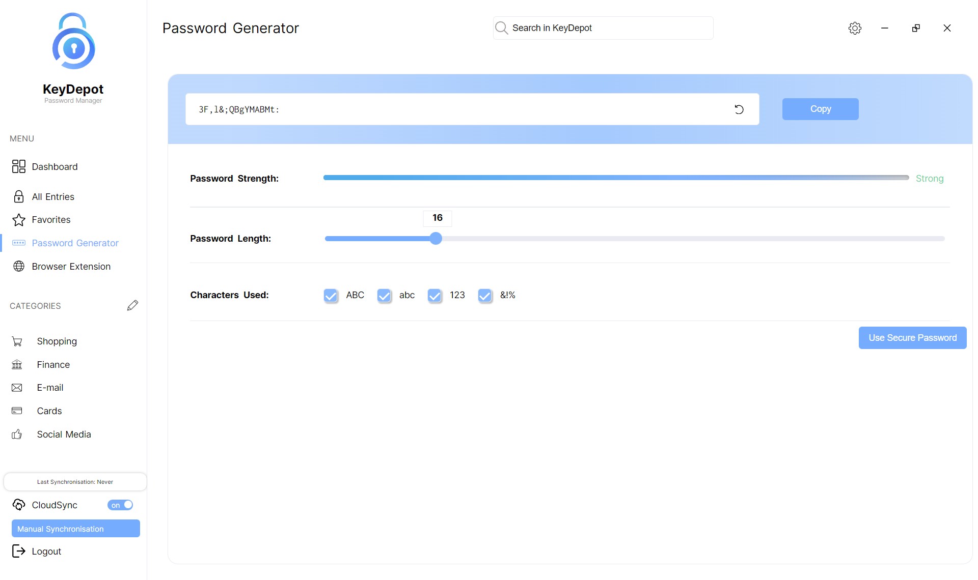 Bezpečnostní experti doporučují používat dlouhá hesla složená z libovolných posloupností malých a velkých písmen a také číslic. Vylepšený generátor hesel KeyDepot vytváří mimořádně silná hesla, která nelze uhodnout ani pomocí slovníkových algoritmů.