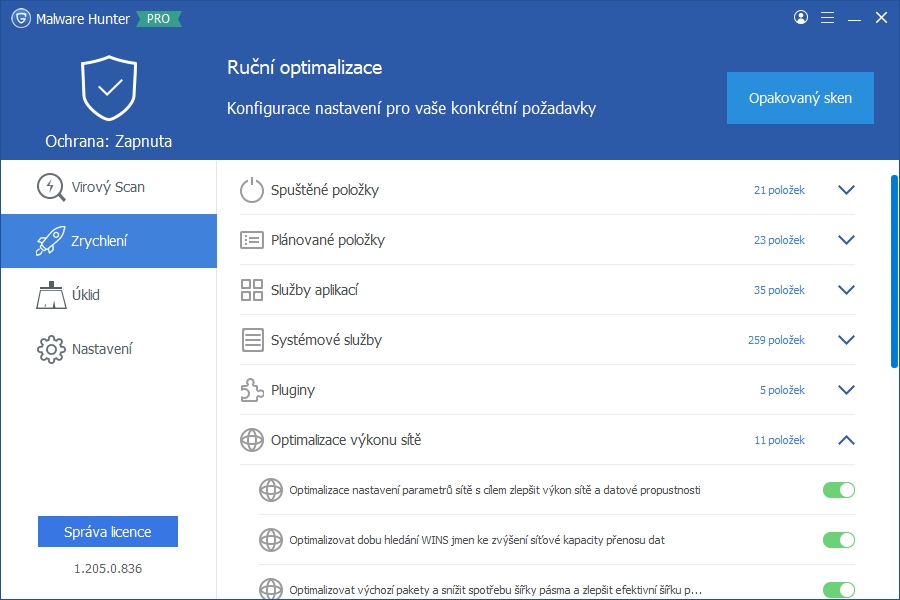 Funkce na zrychlení počítače umožňuje nejen zakázat aplikacím automatické spouštění společně s Windows, ale třeba také optimalizací nastavení zrychlit připojení k internetu. Dále můžete zastavit i různé systémové služby – jen pozor, abyste nezasáhli do klíčových funkcí Windows.