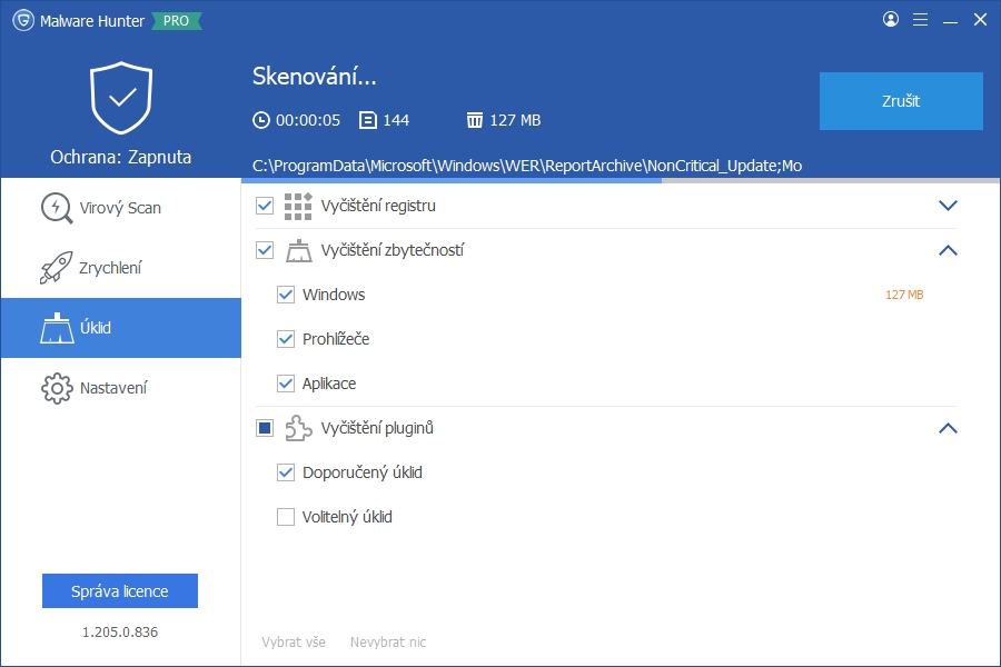 V nabídce „Úklid“ najdete možnosti vyčištění disku počítače od zbytečných dat. Kromě registru zkontroluje Glarysoft Malware Hunter také nepotřebná data systému Windows, aplikací nebo internetových prohlížečů, vypočítá potenciální úsporu místa na disku a na váš pokyn zbytečnosti smaže.