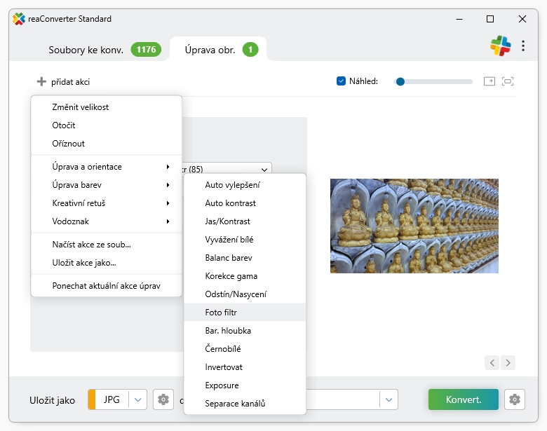 Aplikace reaConverter 8 Standard dokáže otevřít přes 700 různých grafických formátů, včetně RAW snímků ze všech běžných typů fotoaparátů, vektorových formátů z grafických aplikací od Adobe, souborů z Microsoft Office, vektorových výkresů z CAD aplikací, obrázků ve formátu HEIC i WebP a mnoho dalších. Při jejich konverzi pak máte na výběr z desítek různých formátů, mezi nimiž snadno najdete typy souborů, které lze otevřít v aplikacích, které sami běžně používáte. Opravdu jen velmi těžko můžete narazit na grafický formát, se kterým by si reaConverter neporadil. A co víc, během dávkové konverze vstupních souborů můžete třeba na fotky, ale také na další typy obrazových souborů, použít celou řadu funkcí na úpravy. Hromadně je možné fotky a obrázky nejen otáčet, ořezávat nebo měnit jejich velikost, ale také upravovat jejich barvy a expozici, stejně jako na ně aplikovat řadu efektů a filtrů. Další informace najdete na produktové stránce, v on-line nápovědě výrobce a ve videonávodech na YouTube.