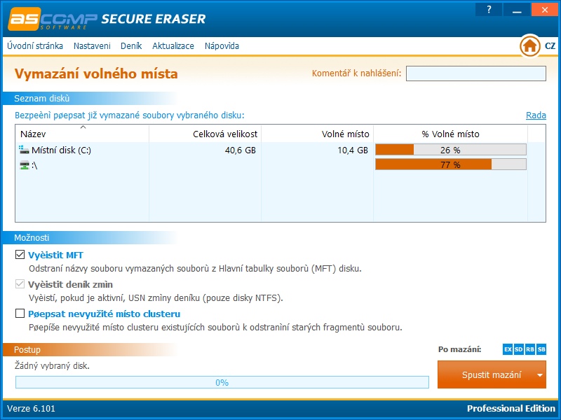 Specialitou je i likvidace dat volného místa na na disku. Secure Eraser najde volné místo na disku a přepsání tohoto místa z něj odstraní jakékoliv stopy po předchozích souborech, ab nemohly být obnoveny.