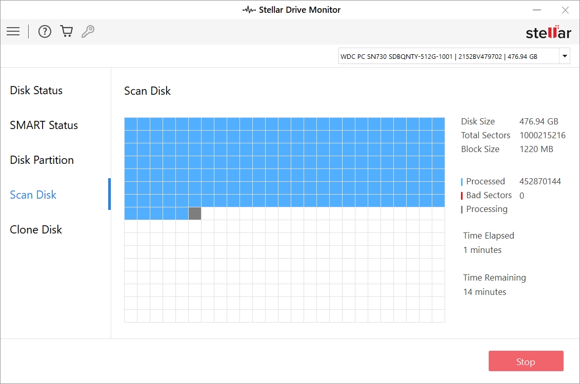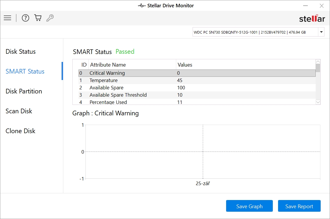 Stellar Drive Monitor provádí komplexní monitoring stavu pevných disků na základě senzorů a analýzy S.M.A.R.T. dat. Díky tomu dokáže s dostatečným předstihem předpovědět selhání disku. Program sleduje kritické parametry jako teplotu, množství chyb při čtení dat, počet přesunutých sektorů, počet spuštění a celkovou dobu provozu i další ukazatele opotřebení. Pokud teplota překročí bezpečný limit (obvykle 50 °C), zobrazí se varování. Při kritické teplotě může program celý počítač vypnout. Stellar Drive Monitor umí také zkontrolovat povrch disku a identifikovat vadné sektory. Integrovaná funkce klonování umožňuje rovnou vytvořit záložní kopii disku a chránit tak data před jejich nečekanou ztrátou. Stellar Drive Monitor podporuje všechny typy moderních disků, běží na pozadí systému a při detekci problémů okamžitě zobrazí varování. V tištěném Chipu jsme připravili rozsáhlý popis programu, další informace najdete na produktové stránce.