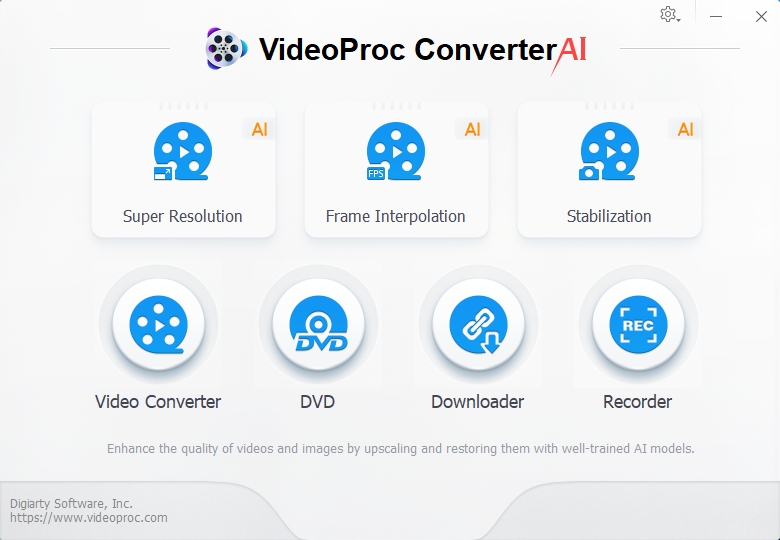 Velkou výhodou programu VideoProc Converter AI jsou funkce podporované umělou inteligencí, které se postarají o zvýšení rozlišení a snímkové frekvence videozáznamů, stejně jako o stabilizaci roztřeseného obrazu. K urychlení výpočtů se používá výkon grafického procesoru.