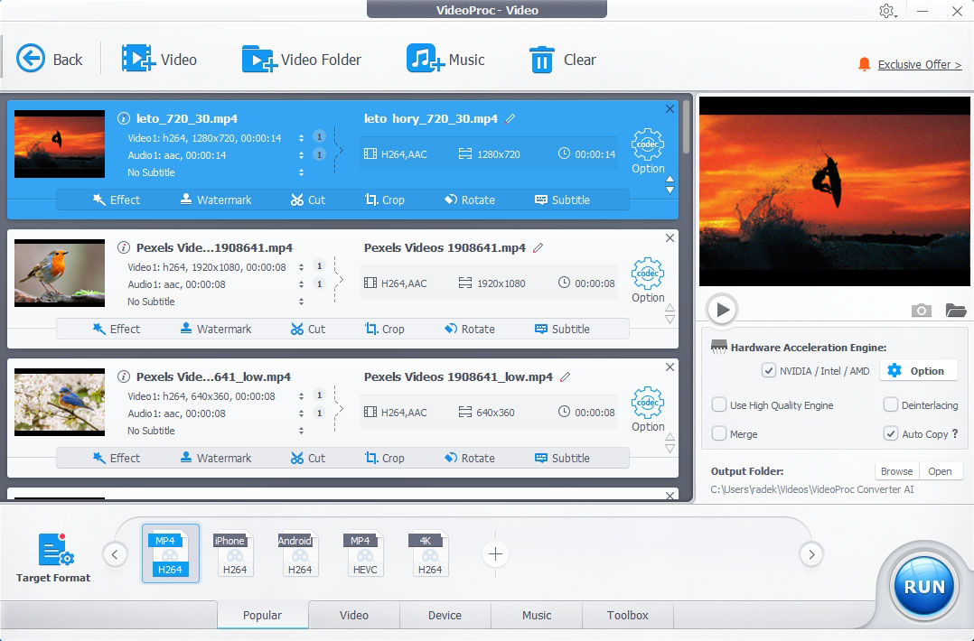 Díky podpoře hardwarové akcelerace a snadnému ovládání umožňuje VideoProc zpracování videí i uživatelům méně výkonných počítačů.