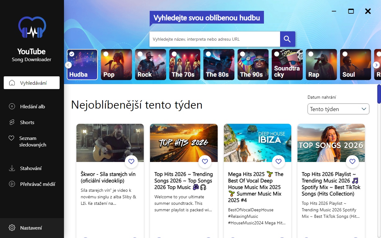 YouTube Song Downloader vyhledává i celá alba a zobrazuje top-ten nejstahovanějších songů.