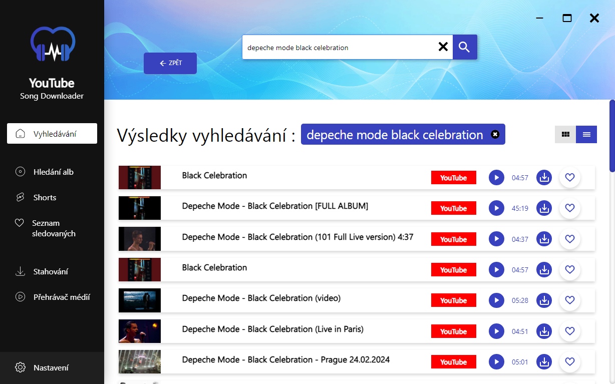 Zadejte do vyhledávače YouTube Song Downloader název interpreta a ihned získáte seznam všech jeho skladeb na YouTube.