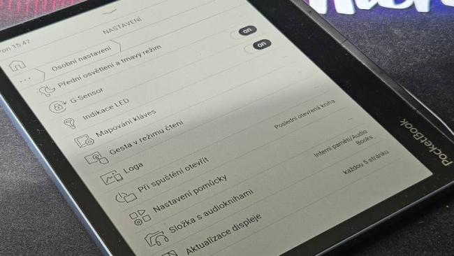 Vnitřní 32GB úložiště má dostupnou kapacitu cca 28 GB, takže nevadí, že jej nelze rozšířit paměťovou kartou. 28 GB bohatě stačí na tisíce textových knih a ještě zbyde místo na stovky audiotitulů. V případě potřeby lze použít USB-C flash disk, ze kterého lze přehrávat i hudební soubory. Během testu jsme bez problému používali USB-C disk s kapacitou 128 GB, naformátovaný na FAT32.
