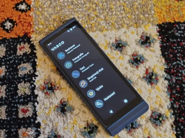 Vasco Translator V4 vypadá na první pohled trochu jako smartphone Sony Xperia 10, má úzké a protáhlé tělo s 5” displejem a šířkou 5,5 cm, díky čemuž se dobře drží v ruce. S hmotností 134 gramů je lehčí než většina telefonů, snadno se vejde do kapsy nebo jej můžeme pověsit na krk. Škoda, že na trhu nejsou podobně kompaktní smartphony.