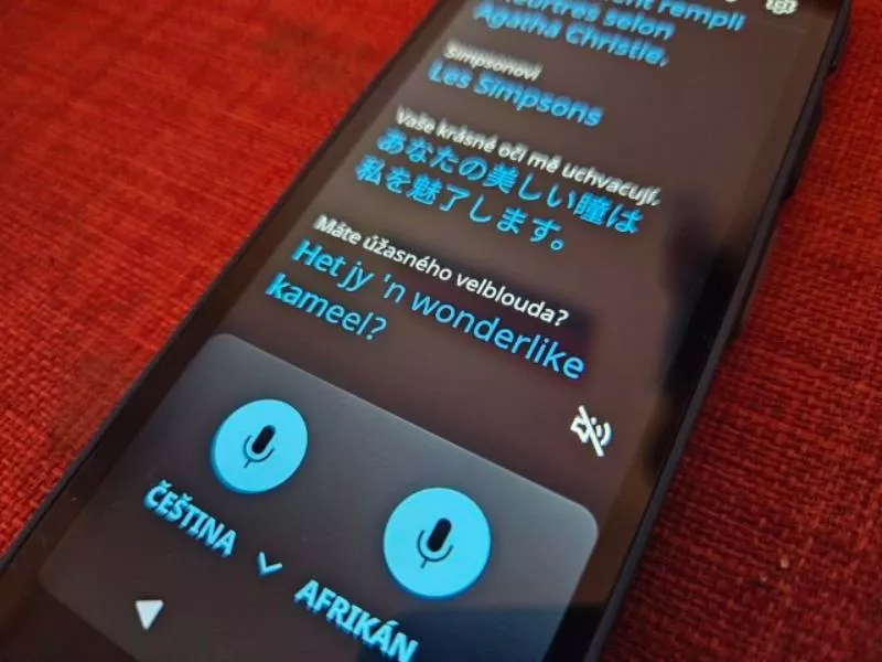 Okno tlumočníka rozhovorů. Přepínat mezi jazyky lze i během konverzace