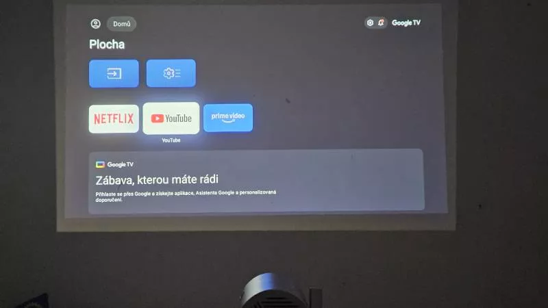 Projektor pracuje s univerzálním operačním systémem Google TV, takže do něj lze nainstalovat všechny potřebné aplikace. Chod operačního systému je hladký a plynulý, projektor reaguje na povely dálkového ovladače prakticky okamžitě.