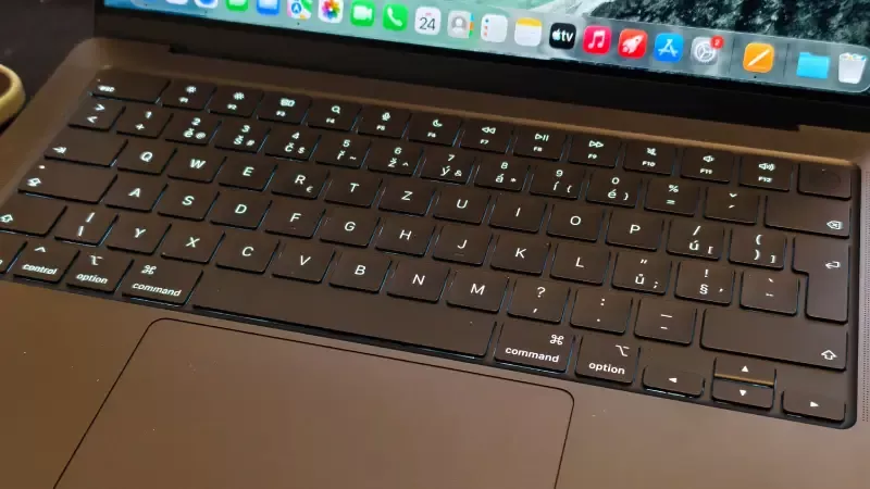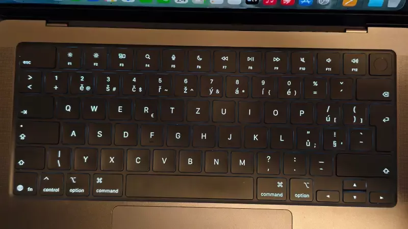Klávesnice notebooku Apple MacBook Pro (M5) je podsvícná a má českou diakritiku